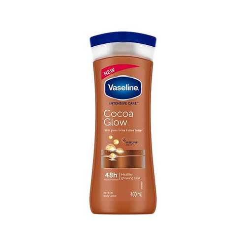 لوسیون بدن کره کاکائو وازلین مدل cocoa glow حجم 400 میل