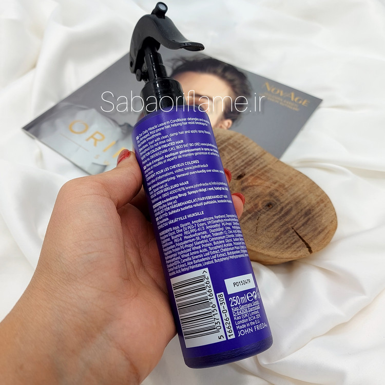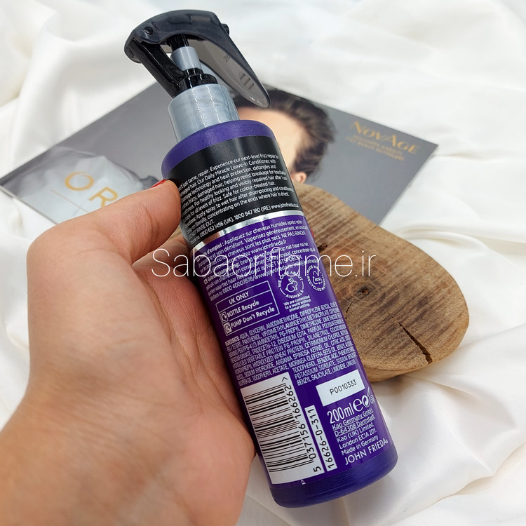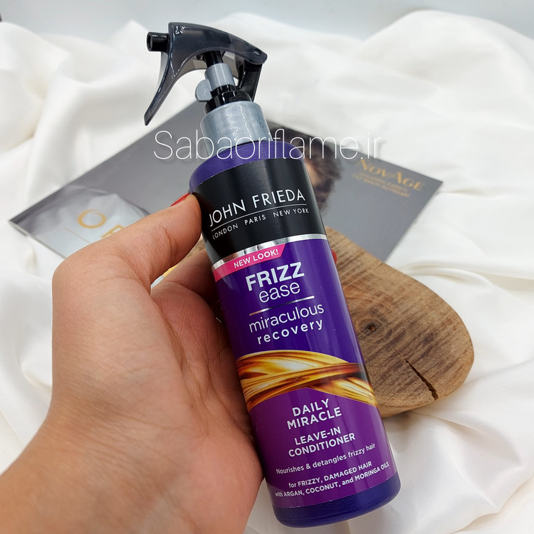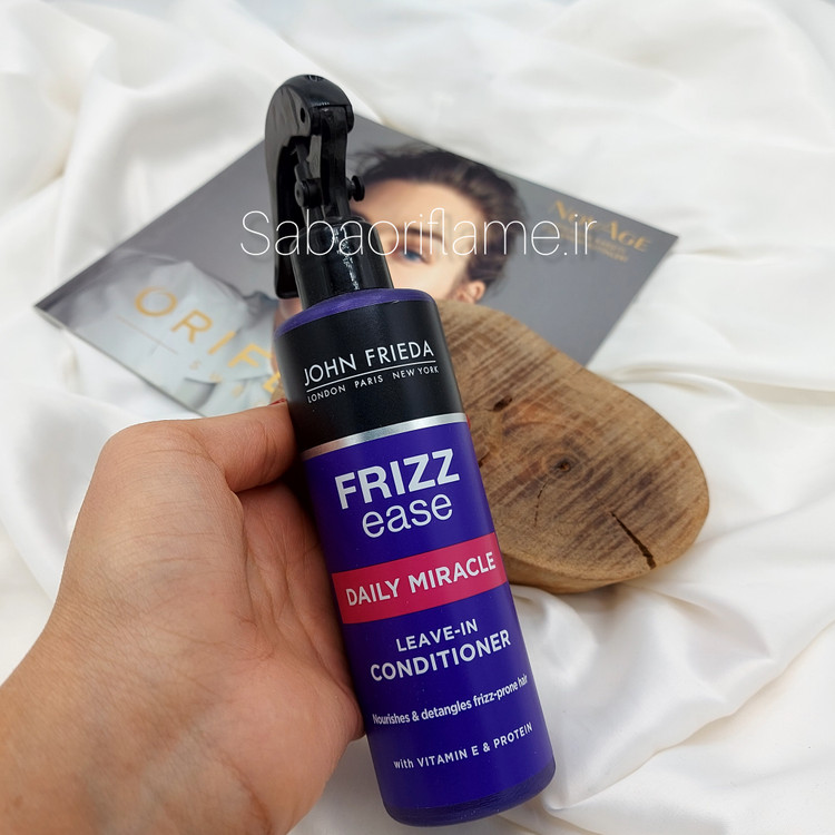لوسیون بعد از حمام مو سری Frizz Ease: ضد وز جان فریدا John Frieda دارای خاصیت صاف کنندگی بسیار قوی مرطوب کنندگی و احیا موهای آسیب دیده بلافاصله پس از مصرف جلوگیری از ایجاد الکتریسیته ساکن در موها