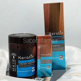 حاوی ۹۸ درصد کراتین خالص و مایع نرم کننده و تقویت کننده مو جلوگیری از موخوره افزایش استحکام مو حاوی پروتیین هیدرولیز شده مناسب انواع موها به خصوص موهای خشک و آسیب دیدهحجم ماسک: 1000 میل حجم شامپو :900 میل حجم سرم : 100 میل