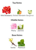 نت ابتدایی: ترنج، نارنگی ماندارین، توت فرنگی وحشی نت میانی: گل پونی، یاسمین نت پایانی: وانیل، نعنا هندیرایحه میوه ای و وانیلی