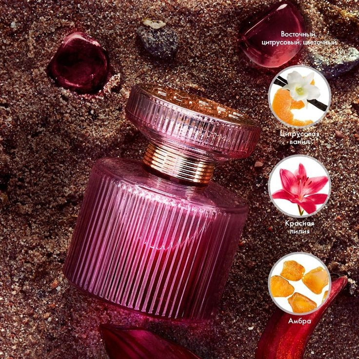برگرفته از انرژی سنگ با ارزش کهربای قرمز در ترکیب با رایحه نیلوفر قرمز، رایحه ای پیچیده و پر رمز و راز