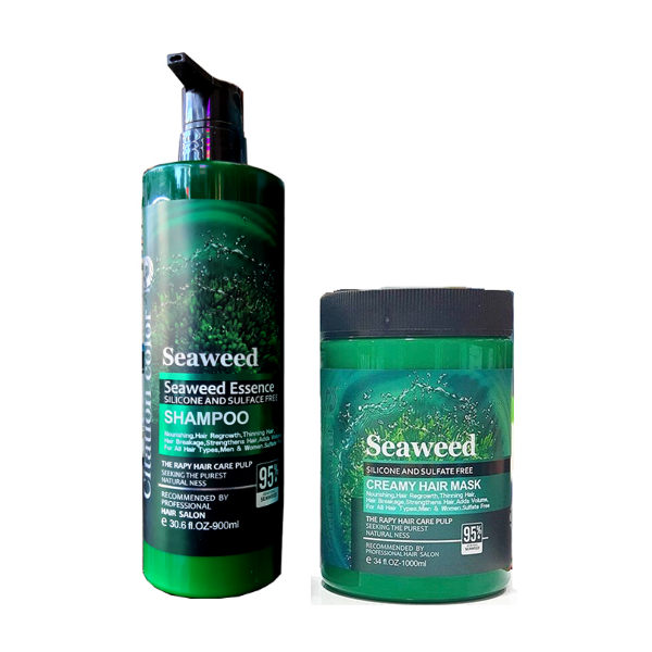 ست شامپو و ماسک بدونسولفات جلبکدریایی ، یک شامپو بسیار قوی حاوی 95 درصد جلبک دریایی بازسازی کننده مو ، این محصول به صورت تخصصی برای انواع مو ها تولید شده و مناسب خانم ها و آقایان می باشد . این شامپو مو ها را به خوبی تغذیه می کند و از ریزش آنها به شدت جلوگیری می کند و همچنین بدون سولفات ، فسفات و سدیم می باشد .