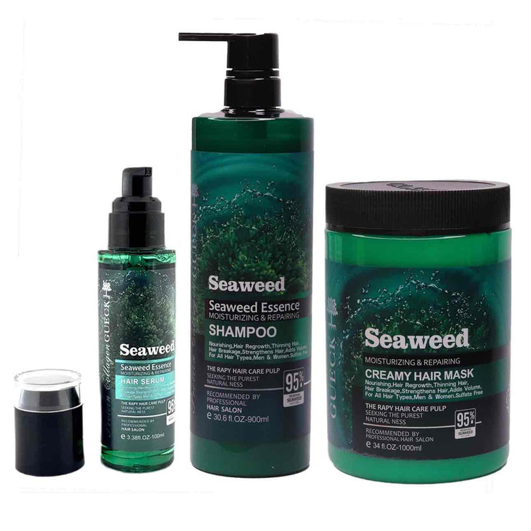 پک شامپو+ماسک مو و سرم مو جلبک دریایی SEAWEED کراتین+تقویت کننده مو+ضد ریزش مو اصل گوک