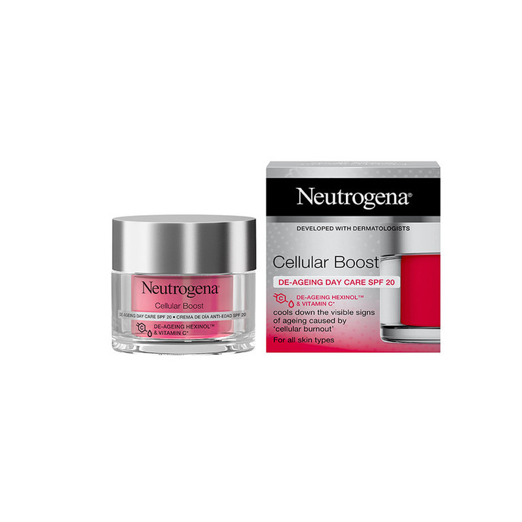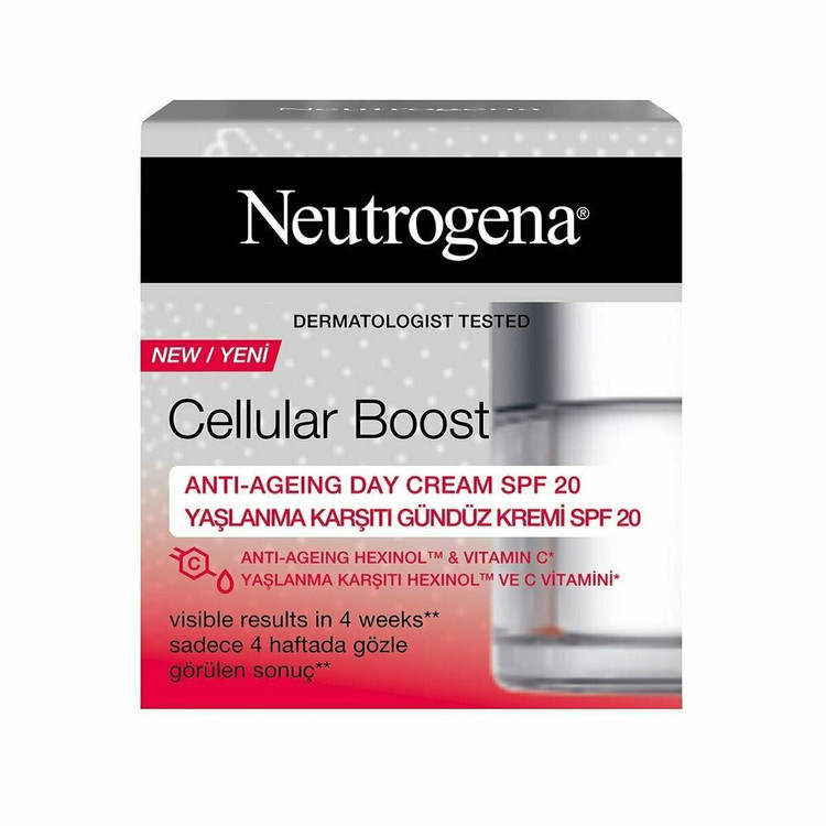کرم روز ضد چروک نوتروژینا SPF 20 Cellular Boost حاوی ویتامین C مناسب برای افرادی است که میخواهند علائم پیری پوست خود را کاهش دهند و همچنین از پوست خود در برابر آسیبهای ناشی از تابش UV محافظت کنند.: حجم : 50 میل